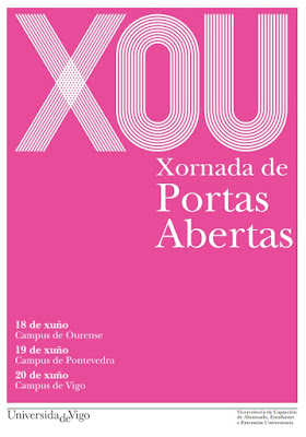 NOTA: Sería conveniente que vos informedes previamente da oferta de cada universidade para preparar a visita con tempo e ir directamente, en primeiro lugar, aos expositores daquelas que vos interesen máis. Para acceder a esta información recordade que neste mesmo blog, na pestana UNIVERSIDADES (columna da esquerda) tedes acceso ás WEBS de todas as universidades españolas.
